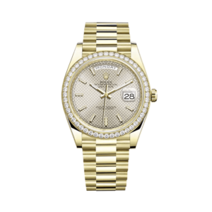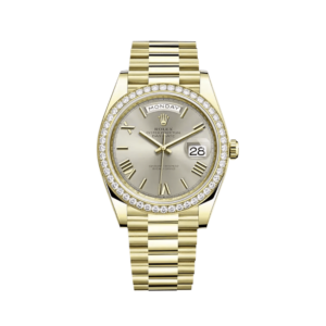 Rolex Day-Date 228348RBR Yellow Gold Diamond Bezel Silver Dial