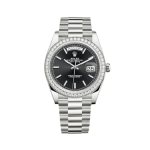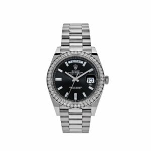 Rolex Day-Date 228349RBR White Gold Black Dial Diamond Bezel