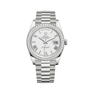 Rolex Day-Date 228349RBR White Gold Diamond Bezel White Dial