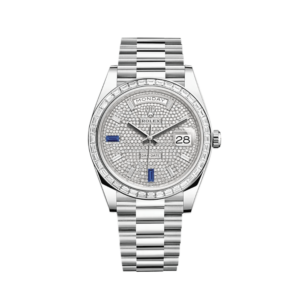 Rolex Day-Date 228396TBR Platinum Diamond Bezel Blue Dial