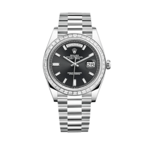 Rolex Day-Date 228396TBR Platinum Diamond Bezel Black Diamond Dial