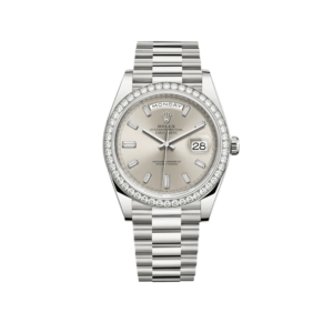 Rolex Day-Date 228349RBR White Gold Diamond Bezel Silver Diamond Dial