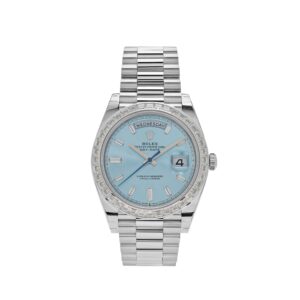 Rolex Day-Date 228396TBR Platinum Diamond Bezel Ice Blue Diamond Dial