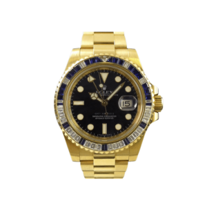 Rolex GMT-Master II 116748SA Yellow Gold Sapphire and Diamond Bezel Black Dial