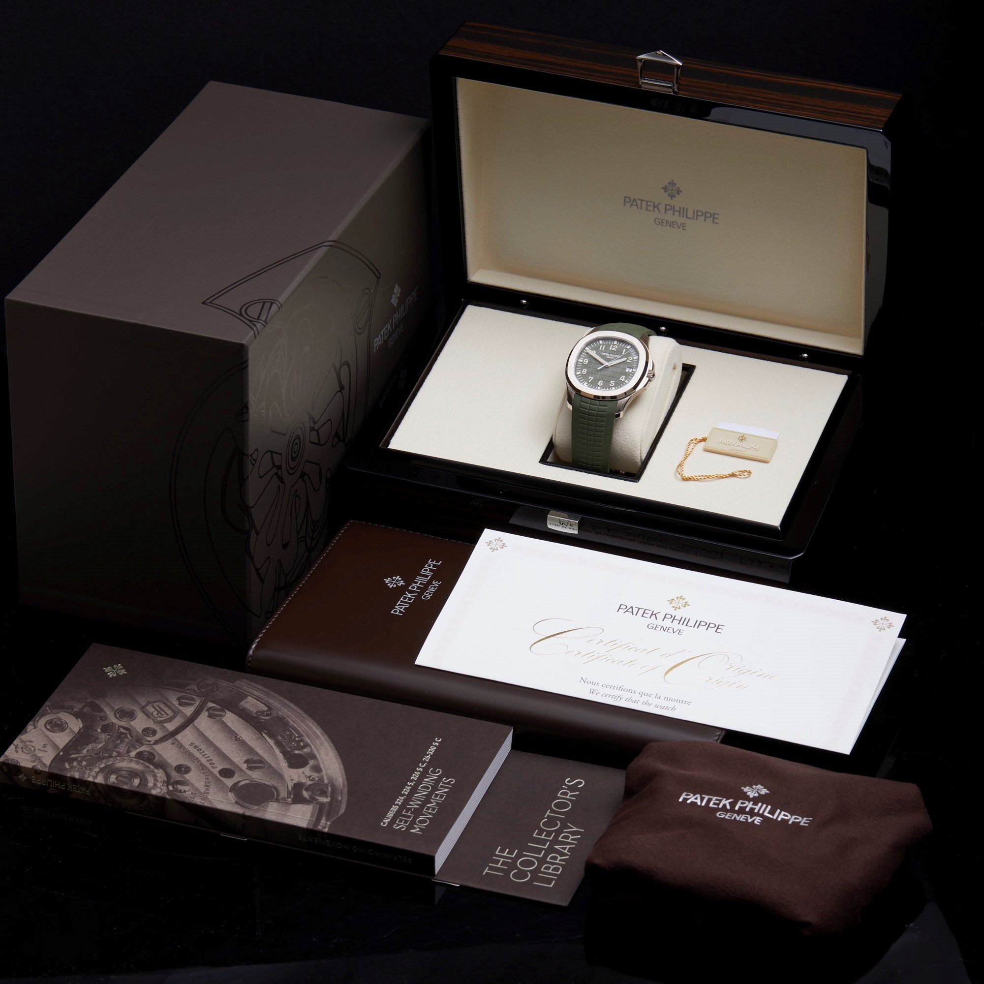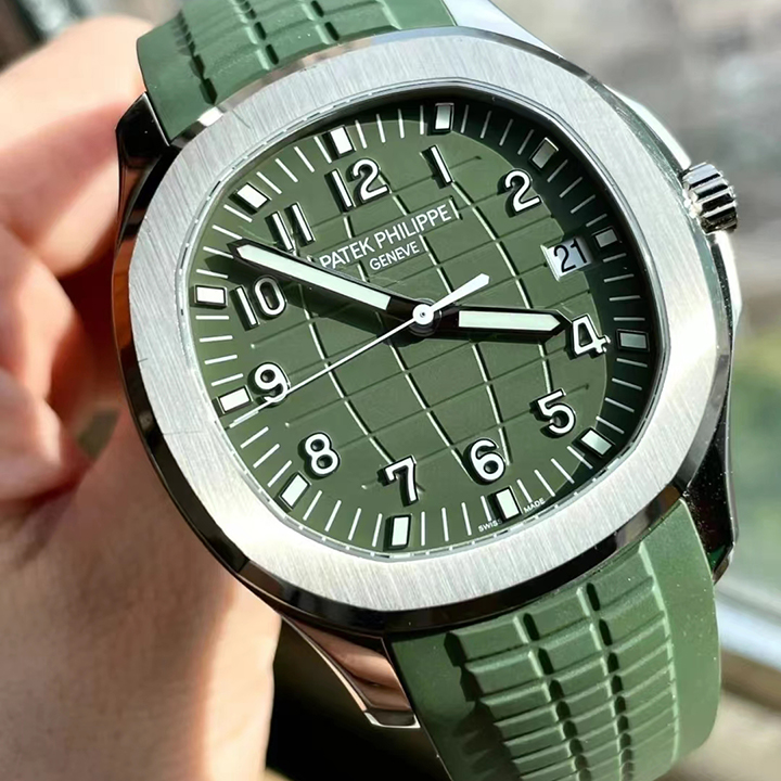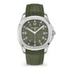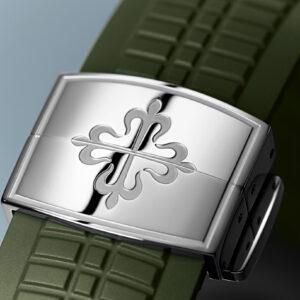 White gold “JUMBO” model in new khaki greenThe Aquanaut white gold men’s watch “Jumbo” (case diameter 42.2 mm) is the representative of modern sports fashion, and the new khaki green design shows a youthful and dynamic style. The bold color palette represents the spirit of exploration that longs for the distance, and the rounded octagonal case and bezel combine polish with satin decoration.