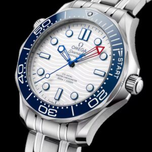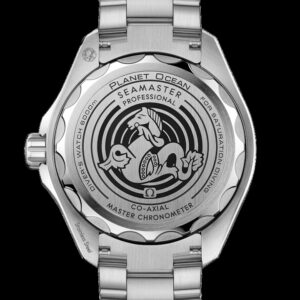 Presented on a black leather strap with rubber lining, this timepiece is driven by the OMEGA Co-Axial Master Chronometer Calibre 8901, visible through the domed scratch-resistant sapphire crystal.