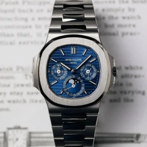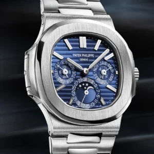 Patek Philippe Nautilus Women’s Watch 7014/1G-001, 18K white gold case, sapphire-crystal back, bezel set with 56 baguette diamonds (~ 2.42 ct), charcoal gray dial with luminescent coated gold applied numerals and diamond hour markers, caliber 324 S C self-winding movement with date in an aperture and center sweep second hand, approximately 35-45 hours of power reserve, 18K white gold bracelet set with 146 baguette diamonds (~ 8.76 ct), Nautilus fold-over buckle. Water resistant to 60 m.