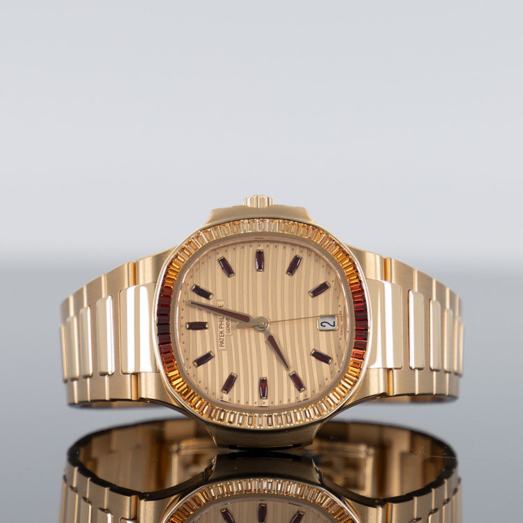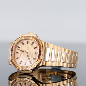Made of rose gold, the Nautilus Ladies’ – 7118/1300R (Ref. 7118-1300R-001) presents itself as a modern jewelry version of the legendary Nautilus from Patek Philippe.