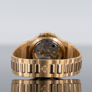 Inside the case, there is the self-winding manufacture caliber 324 S C, whose fine decorations and solid gold central rotor with Patek Philippe seal can be viewed through a sapphire crystal caseback.
