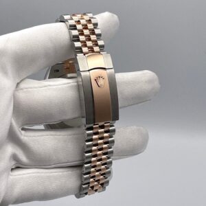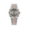 The Rolex Datejust is designed with a 36mm Stainless steel and Rose Gold case, highlighted by the distinctive rose gold fluted bezel. It features a slate dial surrounded by forest green roman numeral hour markers, rose gold hands and date display at 3 o’clock, protected by a scratch-resistant sapphire-crystal. On the wrist the rose gold and stainless steel jubilee bracelet is a true beauty.