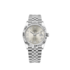 This Oyster Perpetual Datejust 36 in Oystersteel and white gold features a silver, diamond-set dial and a Jubilee bracelet.