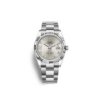 This Oyster Perpetual Datejust 36 in Oystersteel and white gold features a silver, diamond-set dial and an Oyster bracelet.