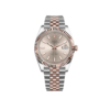 The Rolex Datejust is designed with a 41mm Oystersteel case, highlighted by the signature 18k rose gold fluted bezel. It features a sundust dial with luminous hour markers and rose gold hands with a date display at 3 o’clock, protected by a scratch-resistant sapphire-crystal. On the wrist the 18k rose gold and stainless steel Jubilee bracelet is a true beauty.