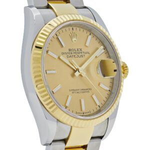 The Rolex Datejust ll is designed with a 41mm oystersteel case, highlighted by the signature 18k yellow gold fluted bezel. It features an elegant champagne color dial with luminous hour markers and yellow?gold hands with a date display at 3 o’clock. On the wrist the 18k yellow?gold and stainless steel oyster bracelet is a true beauty, which includes an oysterclasp deployment buckle. Although pre-owned this watch in excellent condition and comes complete with its original box and papers.