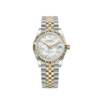 The Rolex Datejust is designed with a 31mm Oystersteel and yellow gold case, highlighted by the distinctive yellow gold fluted bezel. It features a Mother-of-Pearl dial with diamond-set hour markers, yellow gold hands and date display at 3 o’clock protected by a scratch-resistant sapphire-crystal. On the wrist the yellow gold and oystersteel Jubilee bracelet is a true beauty, which includes an oysterclasp deployment buckle with Easylink 5mm comfort extension link.