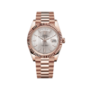The Rolex Presidential Day-Date 40mm is an essential must-have for any collector. An opulent masterpiece, it is inlaid in 18ct Rose Gold and designed with a lavish Sundust Diagonal Motif dial, scratch-proof sapphire crystal, a fluted bezel and automatic movement. The signature Presidential bracelet includes, semi-circular three-piece links and embodies excellence and charm.
