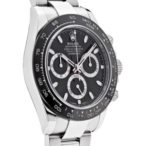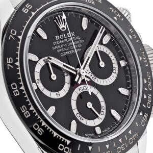 The Rolex Daytona 116500LN is designed in 40mm stainless steel with a black dial and styled on an Oyster bracelet. Luminous hour markers and hands include a?Chromalight?display for optimal legibility. The bezel is engraved with a tachymetric scale and hosts the high-performance Chronograph. This grail can time a speed of up to 400 kilometers per hour and remains seen as the epitome of functionality meeting fashion.