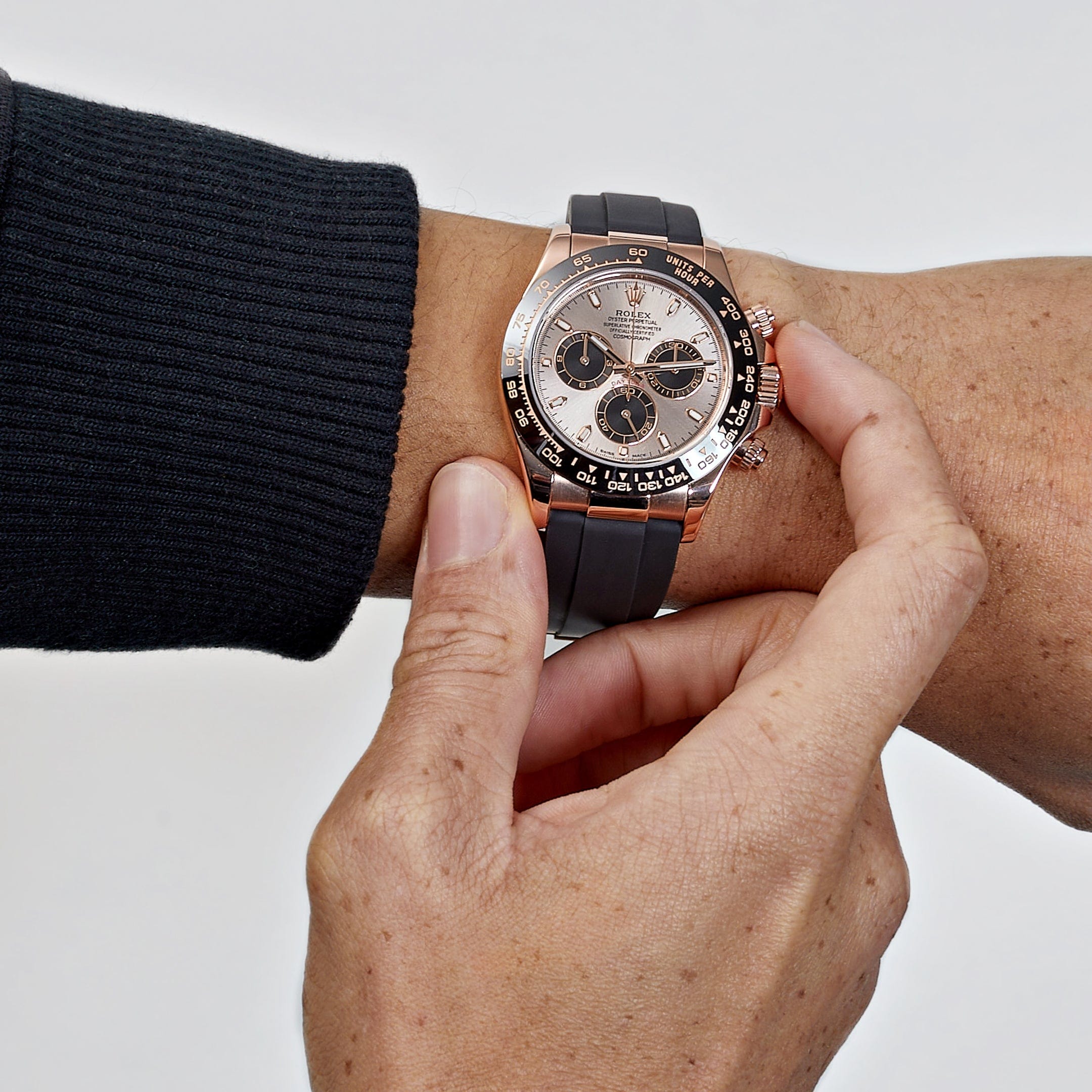 | Bracelet Material | Black Rubber |