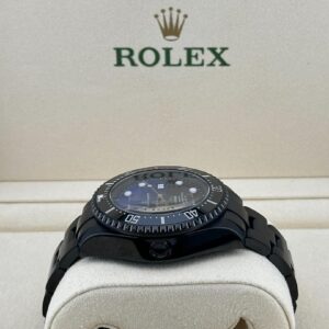 This new release model Rolex Deepsea Sea-Dweller is crafted in an Oystersteel case measuring 44mm in diameter. Chromalight?hour markers and hands?are with luminescent material for maximum timekeeping efficiency above and below the surface.