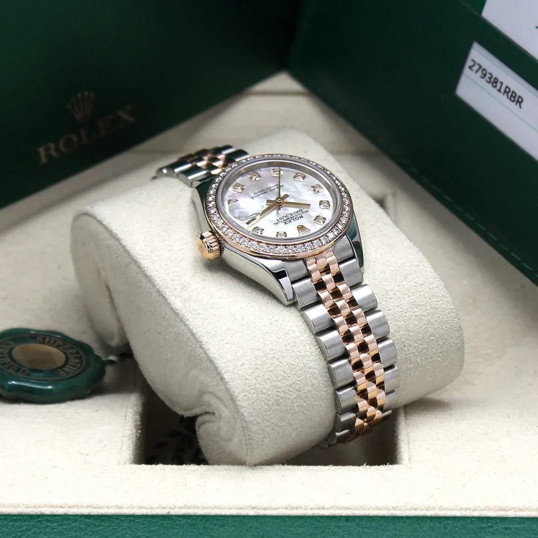 Rolex Lady Datejust 28mm Everose Diamond Bezel Two-Tone 279381 For Women New