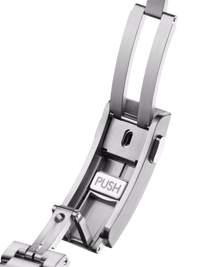 - Domed, protuberant and scratch‑resistant sapphire crystal with anti‑reflective treatment on both sides